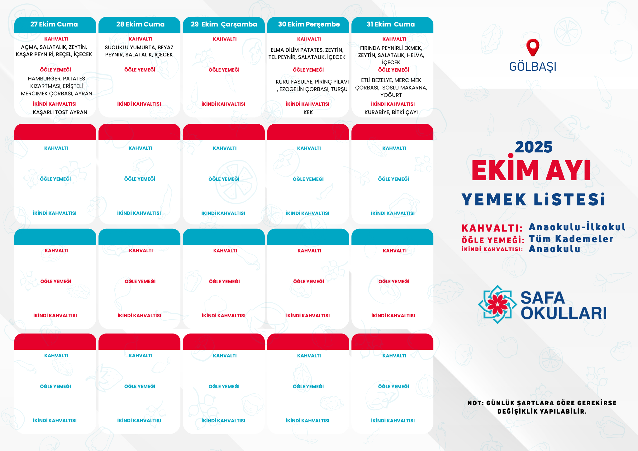 GÖLBAŞI / EKİM AYI YEMEK MENÜSÜ